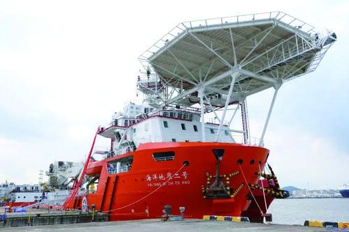 “海洋地質(zhì)二號”船由中交四航局江門航通船業(yè)有限公司建造,安裝有150噸具有主動深沉補償能力的海工吊機,可為其他科考船提供鉆具、設(shè)備和物資補給,承擔(dān)井場調(diào)查、對外消防、救援、安全守護及應(yīng)急撤離等任務(wù);改造后,可搭載設(shè)備集裝箱、冷鏈集裝箱和住人集裝箱等,進一步增強科考船人員換乘及食品補給能力。該船集多學(xué)科、多技術(shù)手段、多功能為一體,具備海洋能源資源勘查和環(huán)境、水體及地質(zhì)等重要影響要素實時監(jiān)測、分析與評價的綜合調(diào)查監(jiān)測能力。
