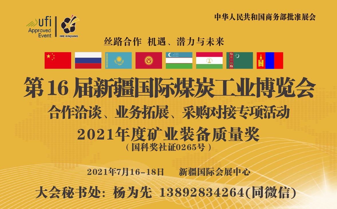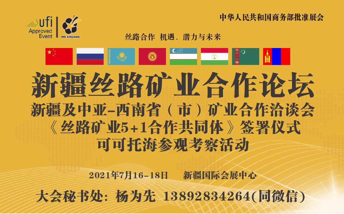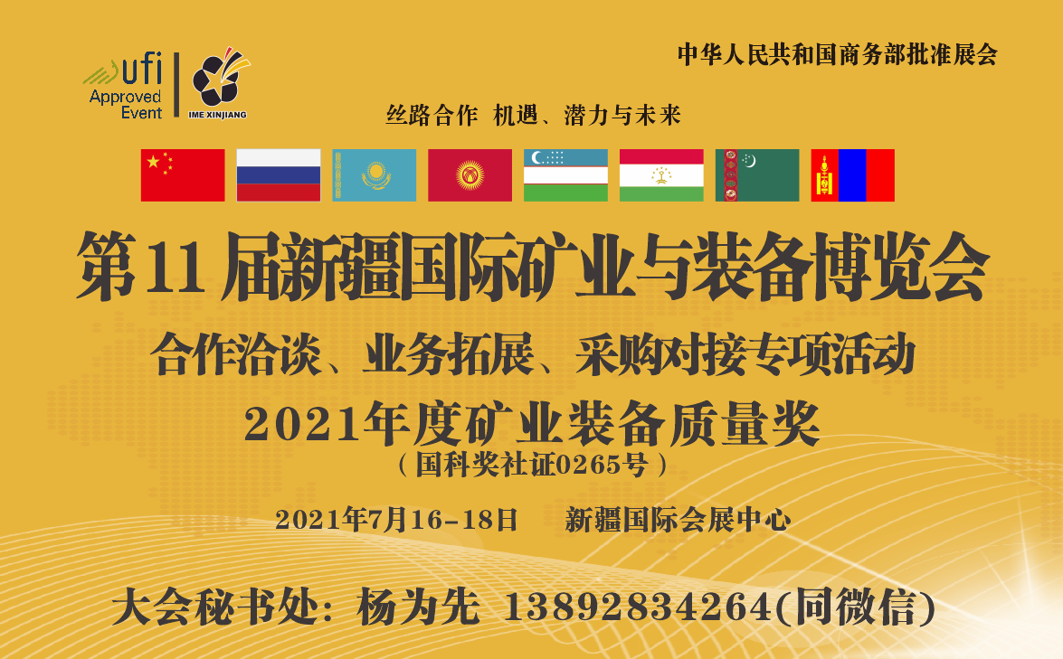 為踐行國(guó)家“一帶一路”倡議,積極落實(shí)中共中央、國(guó)務(wù)院《關(guān)于新時(shí)代推進(jìn)西部大開發(fā)形成新格局的指導(dǎo)意見》,加快推進(jìn)新疆以礦產(chǎn)為代表的資源優(yōu)勢(shì)向經(jīng)濟(jì)優(yōu)勢(shì)轉(zhuǎn)換,促進(jìn)智慧礦山建設(shè)與礦山安全水平提升,加強(qiáng)與中亞國(guó)家的資源與產(chǎn)能合作,由商務(wù)部批準(zhǔn),新疆維吾爾自治區(qū)人民政府國(guó)家305項(xiàng)目辦公室特別協(xié)辦,新疆礦業(yè)聯(lián)合會(huì)等單位聯(lián)合舉辦的“第 11 屆新疆國(guó)際礦業(yè)與裝備博覽會(huì)及新疆絲路礦業(yè)合作論壇”定于2021年7月16-18日在新疆國(guó)際會(huì)展中心舉辦。