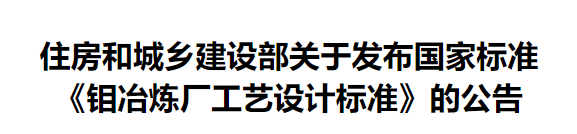 現(xiàn)批準(zhǔn)《鉬冶煉廠工藝設(shè)計(jì)標(biāo)準(zhǔn)》為國家標(biāo)準(zhǔn),編號(hào)為GB51442-2022,自2022年5月1日起實(shí)施。其中,第3.2.7條為強(qiáng)制性條文,必須嚴(yán)格執(zhí)行。