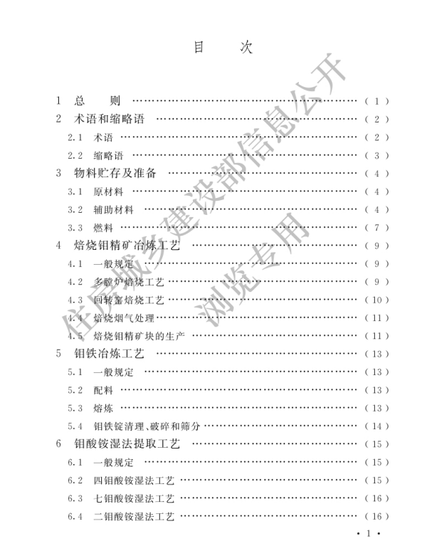 《鉬冶煉廠工藝設(shè)計(jì)標(biāo)準(zhǔn)》