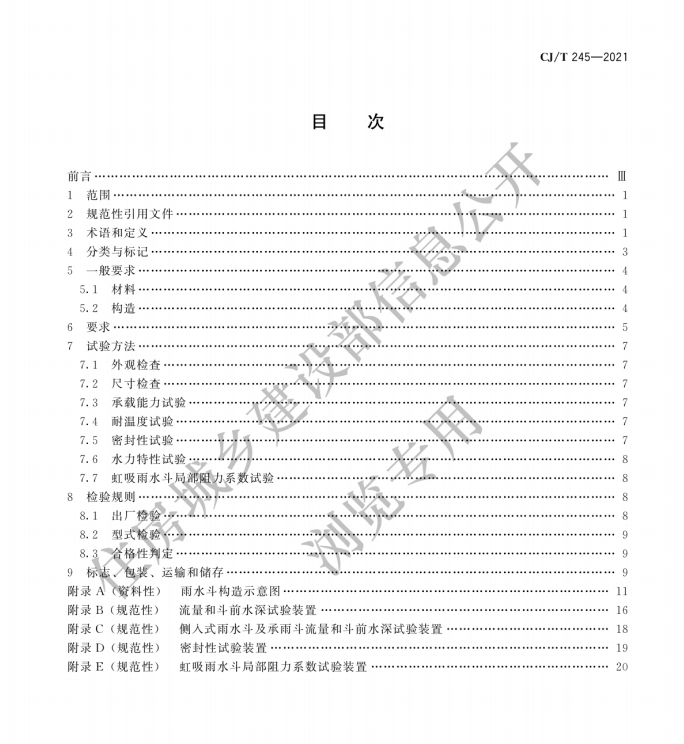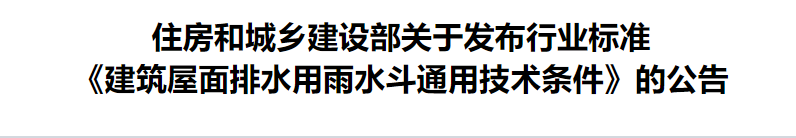 現(xiàn)批準(zhǔn)《建筑屋面排水用雨水斗通用技術(shù)條件》為城鎮(zhèn)建設(shè)行業(yè)產(chǎn)品標(biāo)準(zhǔn),編號(hào)為CJ/T245-2021,自2022年3月1日起實(shí)施。原《虹吸雨水斗》(CJ/T245-2007)同時(shí)廢止。