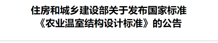 現(xiàn)批準(zhǔn)《農(nóng)業(yè)溫室結(jié)構(gòu)設(shè)計(jì)標(biāo)準(zhǔn)》為國家標(biāo)準(zhǔn),編號(hào)為GB/T51424-2022,自2022年5月1日起實(shí)施。