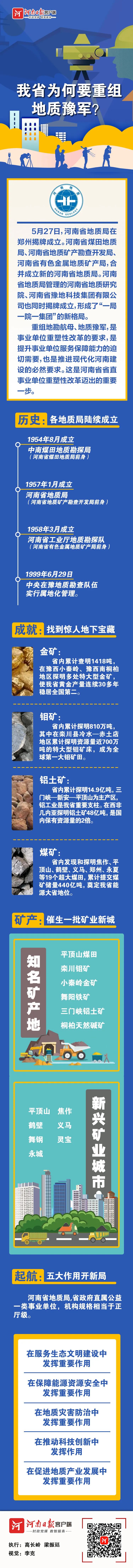5月27日,河南省地質(zhì)局在鄭州揭牌成立。河南省煤田地質(zhì)局、河南省地質(zhì)礦產(chǎn)勘查開發(fā)局、河南省有色金屬地質(zhì)局,合并成立新的河南省地質(zhì)局。
