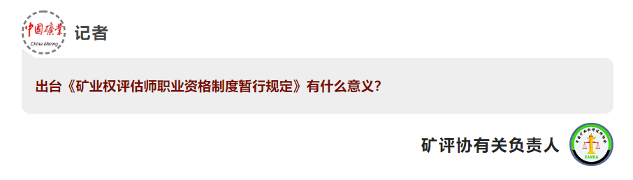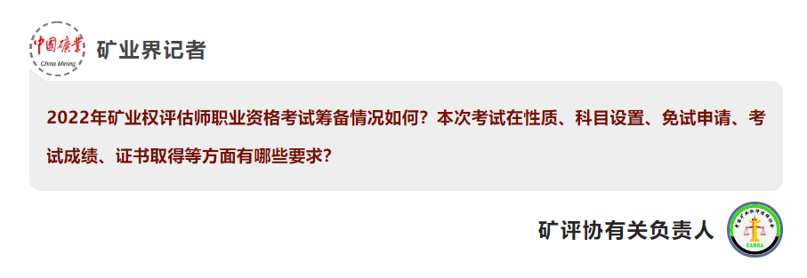 日前,自然資源部印發(fā)《礦業(yè)權(quán)評估師職業(yè)資格制度暫行規(guī)定》和《礦業(yè)權(quán)評估師職業(yè)資格考試實(shí)施辦法》,中國礦業(yè)權(quán)評估師協(xié)會發(fā)布《2022年礦業(yè)權(quán)評估師職業(yè)資格考試通告》。就如何理解、貫徹、落實(shí)這一制度以及2022年礦業(yè)權(quán)評估師職業(yè)資格考試組織實(shí)施相關(guān)情況,記者近日采訪了中國礦業(yè)權(quán)評估師協(xié)會(以下簡稱礦評協(xié))有關(guān)負(fù)責(zé)人。