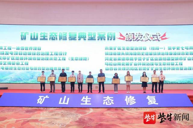 會議對評選出的10項礦山生態(tài)修復優(yōu)秀典型案例和10項礦山生態(tài)修復優(yōu)秀創(chuàng)新技術(shù)項目進行頒獎。與會人員實地參觀了礦山生態(tài)修復項目——江蘇園博園展示。