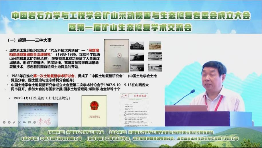 何滿潮、宋振騏、胡振琪等專家學者分別圍繞“無公害生態(tài)采煤新技術(shù)”“新時代的特征和工程學子的光榮使命”“礦山生態(tài)修復回顧與展望”等作專題報告。中國地調(diào)局地質(zhì)環(huán)境檢測院、自然資源部采煤沉陷區(qū)綜合治理工程技術(shù)創(chuàng)新中心、中國林業(yè)與環(huán)境促進會綠色礦山推進會等有關(guān)部門和行業(yè)協(xié)會負責人就我國廢棄礦山生態(tài)修復工作情況和礦山生態(tài)修復政策進行解讀和探討。中建八局環(huán)科公司、中建八局總承包公司等單位聚焦礦山修復的典型案例、關(guān)鍵技術(shù)及應用,對礦山修復的探索實踐作深度報告。