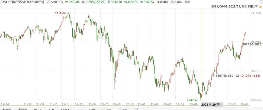 歐元區(qū)STOXX50指數(shù)(9月29日觸底)