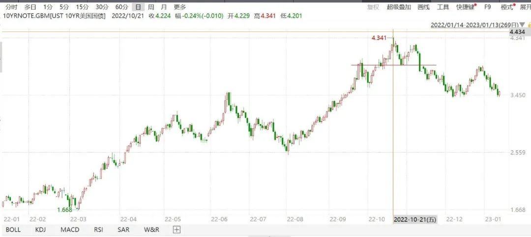 美國10年期國債收益率(10月21日見頂)