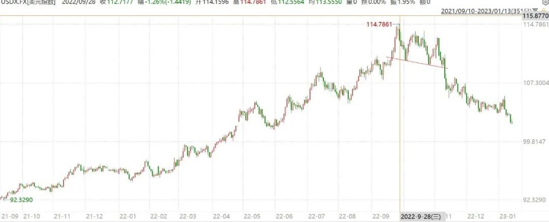 美元指數(shù)持續(xù)回調(diào)(9月28日見頂)