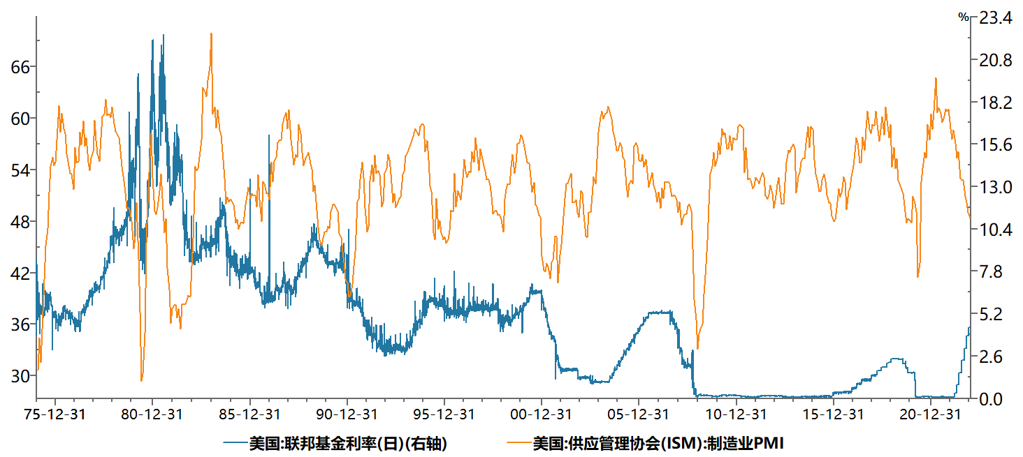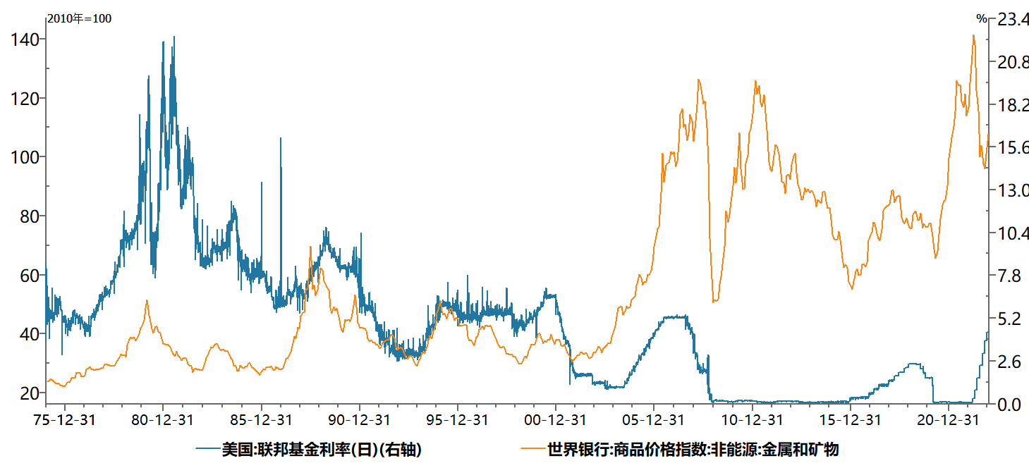 上述討論有一個重大的不確定性就是美聯(lián)儲的加息進(jìn)程,高息環(huán)境的持續(xù)時間有多久,高利率的持續(xù)是否會導(dǎo)致經(jīng)濟(jì)的大幅衰退,何時會出現(xiàn)?礦產(chǎn)品會隨之暴跌嗎?
