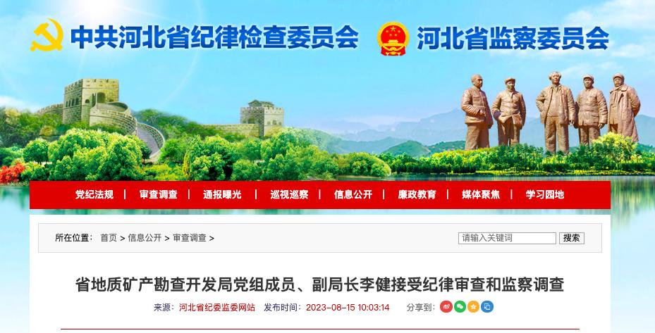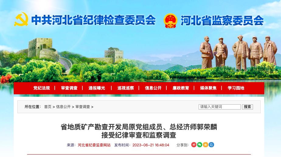上述4名河北省地礦局落馬廳官被查時(shí),除李健尚在職外,其他三人均已退休,其中,郭榮麟于2023年2月退休,賀喜于2021年6月退休,劉鶴峰于2018年11月退休。