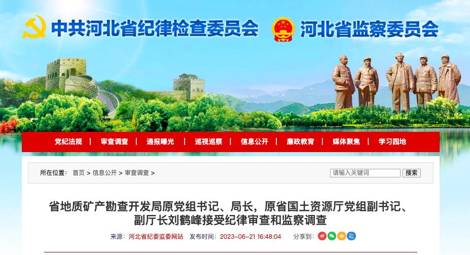 除賀喜和李健外,河北省地礦局還有兩名廳官在此之前已落馬。今年6月21日,河北省紀(jì)委監(jiān)委發(fā)布消息稱,省地礦局原黨組書記、局長(zhǎng),原省國(guó)土資源廳黨組副書記、副廳長(zhǎng)劉鶴峰;省地礦局原黨組成員、總經(jīng)濟(jì)師郭榮麟涉嫌嚴(yán)重違紀(jì)違法,目前正接受省紀(jì)委監(jiān)委紀(jì)律審查和監(jiān)察調(diào)查。