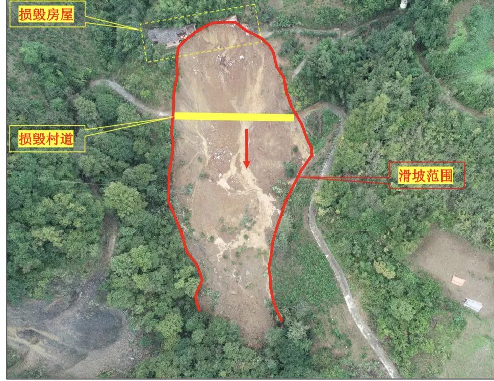 10月6日10時(shí)左右,川共村村支書帶隊(duì)在巡排查中發(fā)現(xiàn)譚太興、王開文2戶房后斜坡有局部滑塌跡象,立即上報(bào)鎮(zhèn)政府,經(jīng)研判分析后,鎮(zhèn)、村立即組織在該處坡腳居住的7戶9人進(jìn)行撤離。7日6時(shí)10分,該滑坡體發(fā)生,造成坡腳譚太興、王開文2戶8間房屋嚴(yán)重受損,直接經(jīng)濟(jì)損失約30萬元。因鎮(zhèn)村撤離及時(shí),成功避免了2戶3人傷亡。