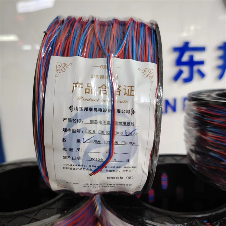 還有一個比較特殊的地方,就是現(xiàn)在很多爆破線具有抗冷抗凍得特點,在零下40°的低溫下,也能正常作業(yè),這也是爆破線的新型材料制成的,非常適合北方等的嚴寒地區(qū)的爆破作業(yè)。普通的電線在嚴寒地區(qū)容易被凍壞,短路等問題,這也是它們的一個非常大區(qū)別。