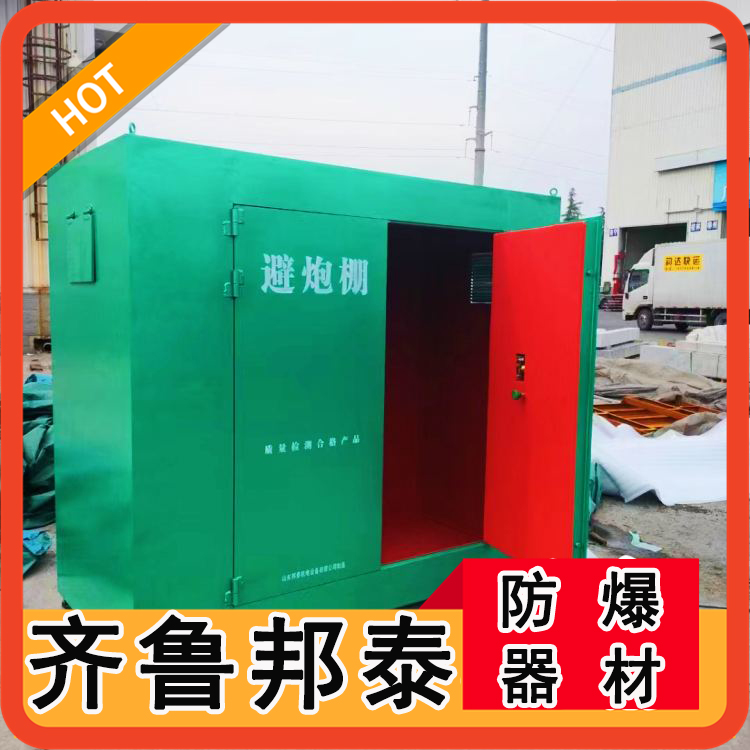 移動避炮棚,也叫爆破防護屋,是本公司采用1.0cm厚左右的冷軋鋼板焊接而成,內部是10mm絕緣木板以及防靜電阻燃氈。避炮棚兩側開有觀察窗口,窗口用防護網(wǎng)封住,能有效的避免蟲蟻進入。