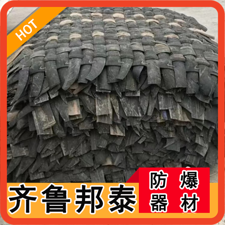 爆破防護(hù)網(wǎng)選用韌度高的橡膠輪胎改編而成,具有較高的強(qiáng)度、彈性和韌性,不易折斷,并有一定的重量,不易被爆炸拋起,氣浪透氣性好、安全系數(shù)高、耐磨耐用、韌性強(qiáng)、可修復(fù)、可多次重復(fù)使用的特點(diǎn),在安全生產(chǎn)和保護(hù)國家及群眾生命財(cái)產(chǎn)安全方面,發(fā)揮了重要作用。膠皮。炮被。厚度2公分及5公分,編織緊密嚴(yán)實(shí),四面用鐵絲扎緊。