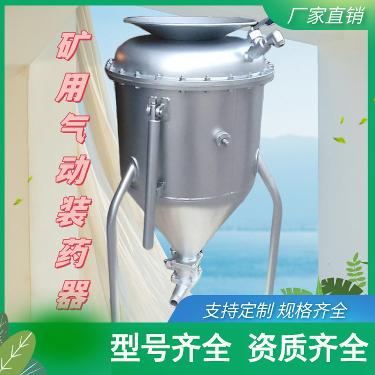 礦用裝藥器是地下礦山不可缺少的裝藥設備。采用風力輸送,具有裝藥速度快、裝填密度大、裝藥效率高、爆破效果好、使用攜帶方便等特點。采用裝藥器裝藥,可節(jié)省人力、提高裝藥效率、改善爆破質量、降低開采成本、減輕勞動強度、保障作業(yè)安全。多年來,經治金、煤礦、建材等井下礦山使用,深受廣大用戶歡迎。