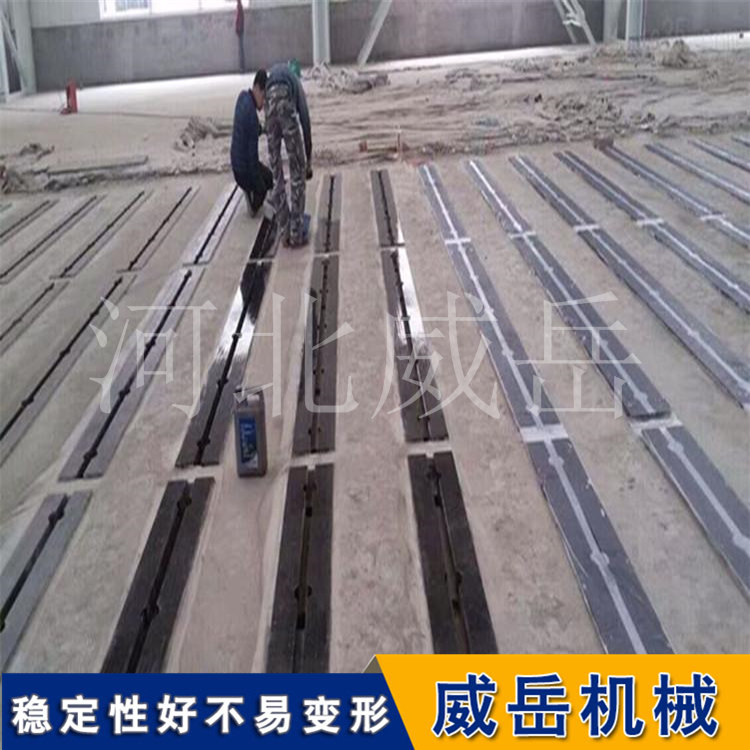 T型槽地軌用于大型設(shè)備的裝配、試驗、焊接和檢驗。T型槽地軌材質(zhì)為強度鑄鐵HT200-300.T型槽地軌規(guī)格可根據(jù)客戶所鋪設(shè)面積而定。