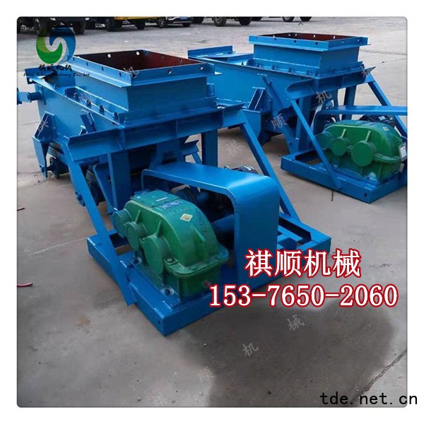 K型給料機(jī)由機(jī)架、底板(給料槽)、傳動平臺、漏斗、閘門、托輥組成,當(dāng)電機(jī)開動后經(jīng)彈性聯(lián)軸器,減速機(jī)、曲柄連桿機(jī)構(gòu)拖動傾斜5度的底板,在輥上作直線往復(fù)運(yùn)動,把煤或其它磨琢性小,粘性不大的松散粒狀,粉狀物料從給料設(shè)備中均勻地卸到受料設(shè)備中