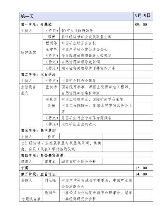 (六)支持單位:中南大學、中非經(jīng)貿(mào)合作協(xié)同創(chuàng)新平臺、中國地質(zhì)科學院礦產(chǎn)資源研究所、中國黃金雜志社、湖南國際商會、湖南綠色先進礦業(yè)研究院、中國礦業(yè)聯(lián)合會礦山安全專業(yè)委員會、湖南國際產(chǎn)業(yè)創(chuàng)新與交流中心、長沙礦山研究院有限責任公司、長沙有色冶金設(shè)計研究院有限公司、中冶長天國際工程有限責任公司、湖南有色產(chǎn)業(yè)投資集團有限責任公司、湖南有色金屬控股集團有限公司、湖南省標準化協(xié)會、長沙市標準化協(xié)會