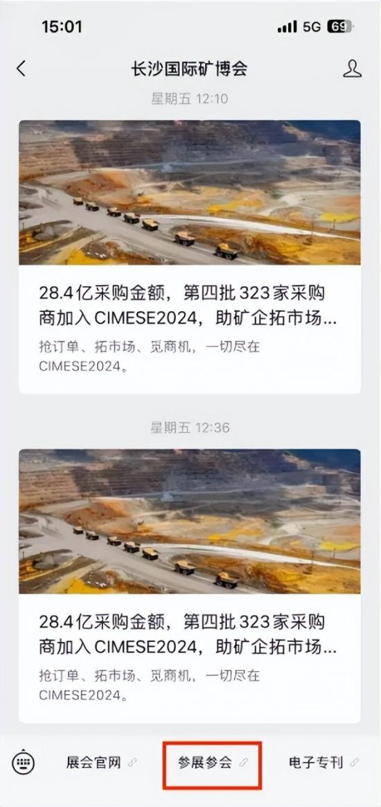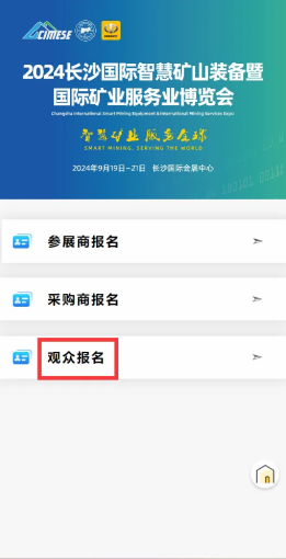 除直接掃描報名二維碼外,CIMESE組委會在官方公眾號:長沙國際礦博會(ID:CIMESE2024)菜單處也嵌入了報名入口。