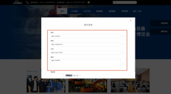 03根據(jù)不同按鍵對應彈出的表單,根據(jù)表單提示填寫參展需求,提交即可。