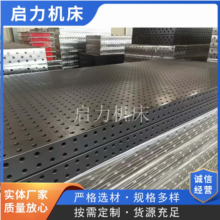 基準孔+定點芯軸技術(shù):平臺臺面預(yù)設(shè)高精度基準孔(精度H7級),工件對應(yīng)位置設(shè)計定點孔,焊接時只需將工件定點孔套入平臺定點芯軸,即可實現(xiàn)自動找正,橫向、縱向偏差≤±0.05mm。焊接挖掘機斗桿時,傳統(tǒng)方式需調(diào)整3-5次才能控制錯邊量≤1.5mm,用平臺直接套芯軸,錯邊量穩(wěn)定≤0.8mm;