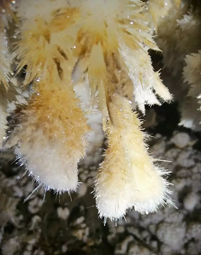 文石貌似絨絨球,鵝管蜿蜒細(xì)細(xì)圈;