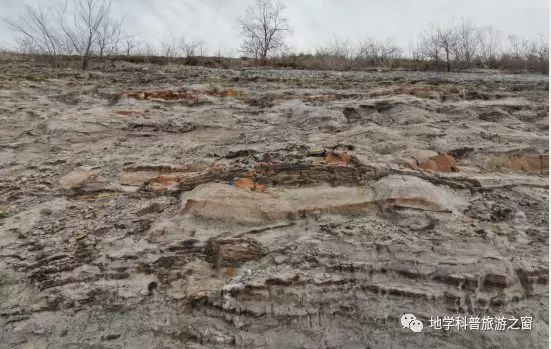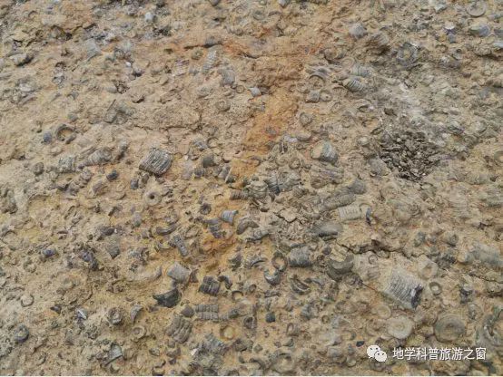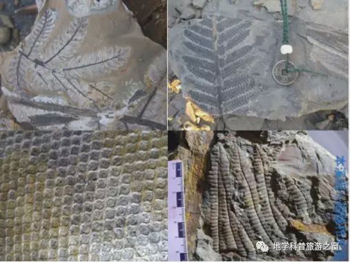 如果說硅化木和植物化石主要保存在這里的砂巖和泥巖中,那么與砂巖泥巖交互產(chǎn)出的石灰?guī)r層中,則是富含了大量的動物化石中蜓、牙形刺、腕足類、珊瑚等,其他的有孔蟲、瓣鰓類、腹足類、苔蘚蟲、鱟、海百合、頭足類、介形蟲類、三葉蟲等門類化石亦有相當(dāng)數(shù)量的代表。