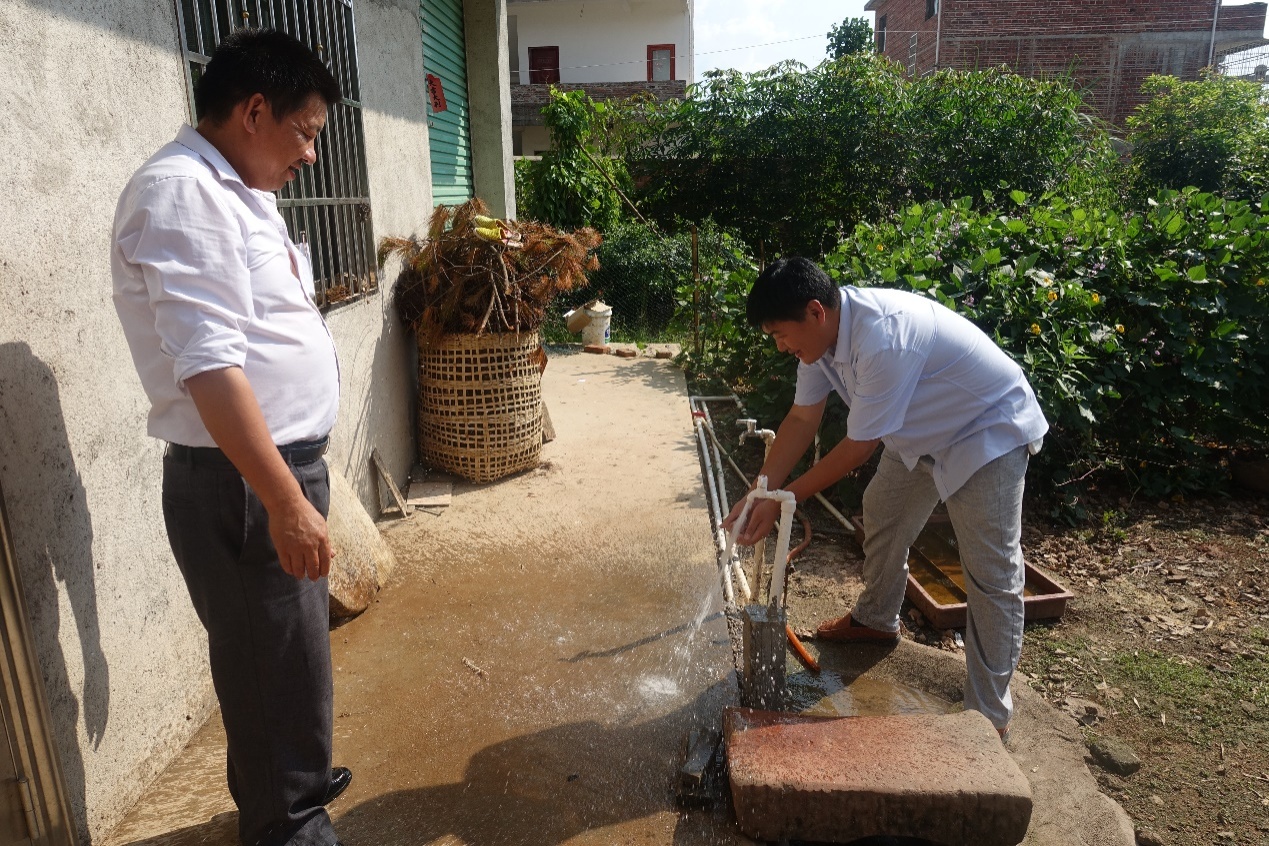 2017年,武漢地調(diào)中心在與當(dāng)?shù)卣_展需求調(diào)研對接時,了解到該村長期缺水的困難。通過實地調(diào)研、技術(shù)勘察和井位論證優(yōu)選,項目組在墩上村組織實施了一口飲水示范井。2017年11月底,墩上飲水示范井成功出水,水量達(dá)120噸/日,水質(zhì)完全符合安全飲用水標(biāo)準(zhǔn)。2018年,贛州市贛縣區(qū)江口鎮(zhèn)鎮(zhèn)政府積極配套扶貧資金,為該村3個村民小組建設(shè)蓄水池和入戶管網(wǎng)工程,墩上示范井于2018年8月8日成功實現(xiàn)試供水,截至目前,已連續(xù)正常供水一個多月。