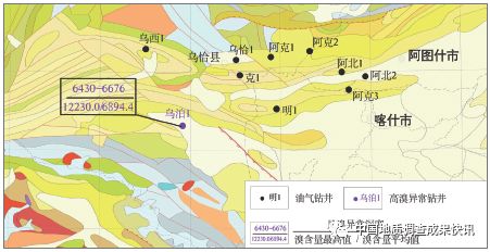 圖3 塔西南坳陷見(jiàn)溴異常特征及井位分布
