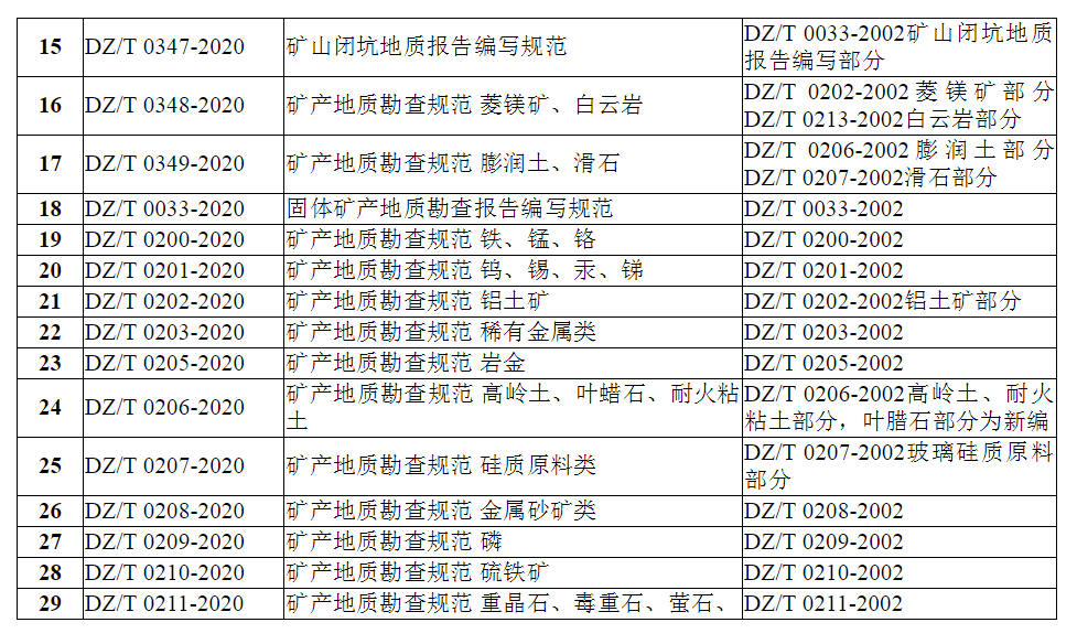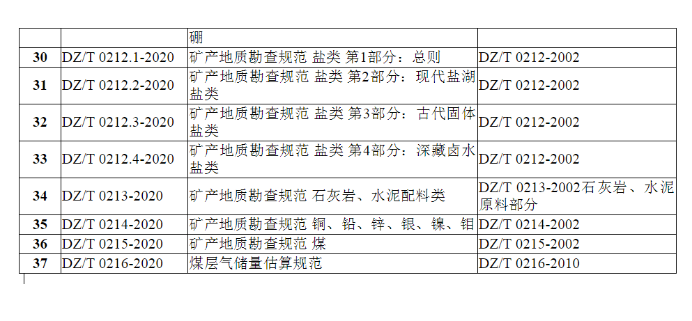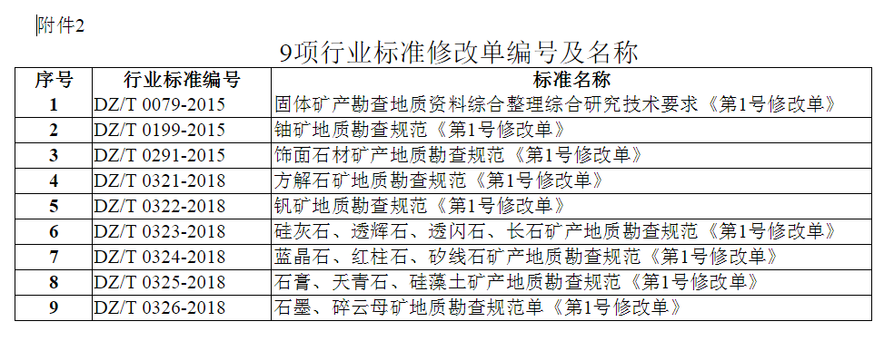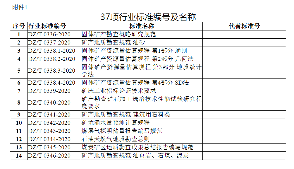 《固體礦產(chǎn)勘查概略研究規(guī)范》等37項(xiàng)行業(yè)標(biāo)準(zhǔn)和9項(xiàng)行業(yè)標(biāo)準(zhǔn)修改單已通過全國(guó)自然資源與國(guó)土空間規(guī)劃標(biāo)準(zhǔn)化技術(shù)委員會(huì)審查,現(xiàn)予批準(zhǔn)、發(fā)布,并于發(fā)布之日起實(shí)施。編號(hào)及名稱見附件。