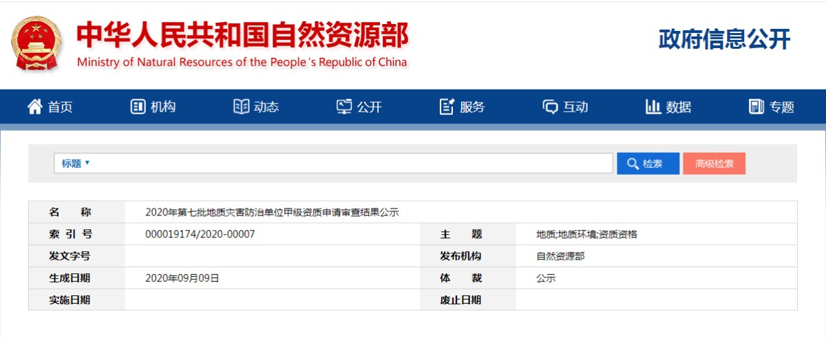 根據(jù)《地質(zhì)災(zāi)害防治條例》(國(guó)務(wù)院令第394號(hào))和《地質(zhì)災(zāi)害危險(xiǎn)性評(píng)估單位資質(zhì)管理辦法》(國(guó)土資源部令第29號(hào))、《地質(zhì)災(zāi)害治理工程勘查設(shè)計(jì)施工單位資質(zhì)管理辦法》(國(guó)土資源部令第30號(hào))、《地質(zhì)災(zāi)害治理工程監(jiān)理單位資質(zhì)管理辦法》(國(guó)土資源部令第31號(hào))、《國(guó)土資源部關(guān)于修改〈地質(zhì)災(zāi)害危險(xiǎn)性評(píng)估單位資質(zhì)管理辦法〉等5部規(guī)章的決定》(國(guó)土資源部令第62號(hào))、《自然資源部關(guān)于第一批廢止和修改的部門(mén)規(guī)章的決定》(自然資源部令第5號(hào)),現(xiàn)將2020年第七批地質(zhì)災(zāi)害防治單位甲級(jí)資質(zhì)申請(qǐng)審查結(jié)果及單位資質(zhì)有關(guān)申報(bào)信息等予以公示,公示期自發(fā)布之日起7天。審查中,有部分單位申報(bào)材料需核查,本次暫不予以公示。