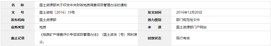 中央財政地質(zhì)調(diào)查項目管理辦法