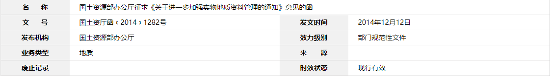 《關(guān)于進(jìn)一步加強(qiáng)實(shí)物地質(zhì)資料管理的通知》意見(jiàn)的函