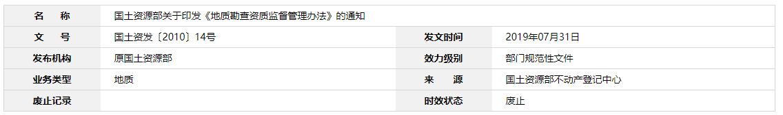 第十條 省級以上國土資源主管部門應當將《地質勘查資質管理信息系統(tǒng)》納入綜合監(jiān)督管理平臺,加強地質勘查資質監(jiān)督管理,及時統(tǒng)計、發(fā)布信息,方便公眾查閱和社會監(jiān)督,提高監(jiān)督管理的質量和效率。