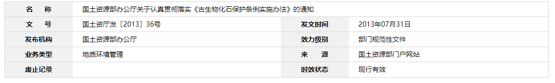 《古生物化石保護(hù)條例實(shí)施辦法》的通知