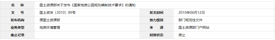 國(guó)土資源部關(guān)于發(fā)布《國(guó)家地質(zhì)公園規(guī)劃編制技術(shù)要求》的通知