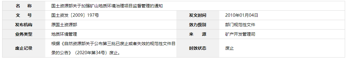 國土資源部關(guān)于加強礦山地質(zhì)環(huán)境治理項目監(jiān)督管理的通知