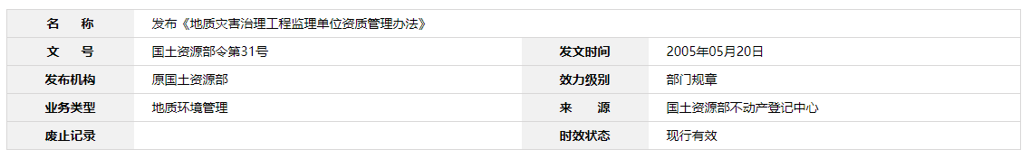 發(fā)布《地質(zhì)災(zāi)害治理工程監(jiān)理單位資質(zhì)管理辦法》