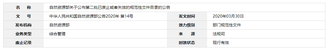 為貫徹實(shí)施新修改的《中華人民共和國(guó)土地管理法》,加快推進(jìn)自然資源管理改革,自然資源部開(kāi)展了規(guī)范性文件集中清理工作。現(xiàn)將自然資源部第二批已廢止或者失效的規(guī)范性文件目錄予以公布。