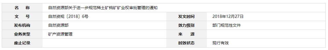 本通知自發(fā)布之日起執(zhí)行,有效期3年!秶临Y源部關(guān)于規(guī)范稀土礦鎢礦探礦權(quán)采礦權(quán)審批管理的通知》(國土資規(guī)〔2015〕9號)同時廢止。