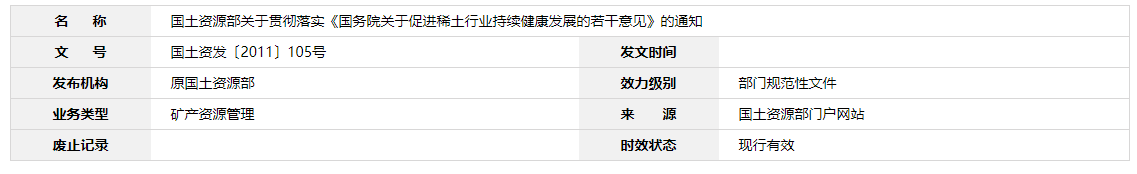 國(guó)土資源部關(guān)于貫徹落實(shí)《國(guó)務(wù)院關(guān)于促進(jìn)稀土行業(yè)持續(xù)健康發(fā)展的若干意見》的通知