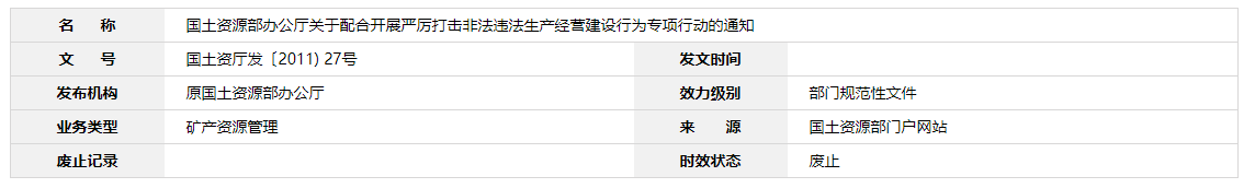 【礦產(chǎn)資源管理】國(guó)土資源部辦公廳關(guān)于配合開展嚴(yán)厲打擊非法違法生產(chǎn)經(jīng)營(yíng)建設(shè)行為專項(xiàng)