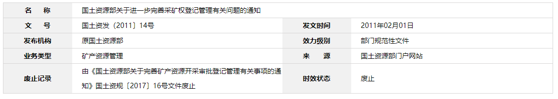 | 國土資源部關(guān)于進(jìn)一步完善采礦權(quán)登記管理有關(guān)問題的通知 |