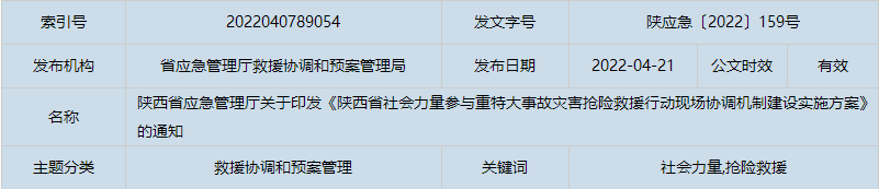 原標(biāo)題:陜西省應(yīng)急管理廳關(guān)于印發(fā)《陜西省社會力量參與重特大事故災(zāi)害搶險救援行動現(xiàn)場協(xié)調(diào)機(jī)制建設(shè)實(shí)施方案》的通知