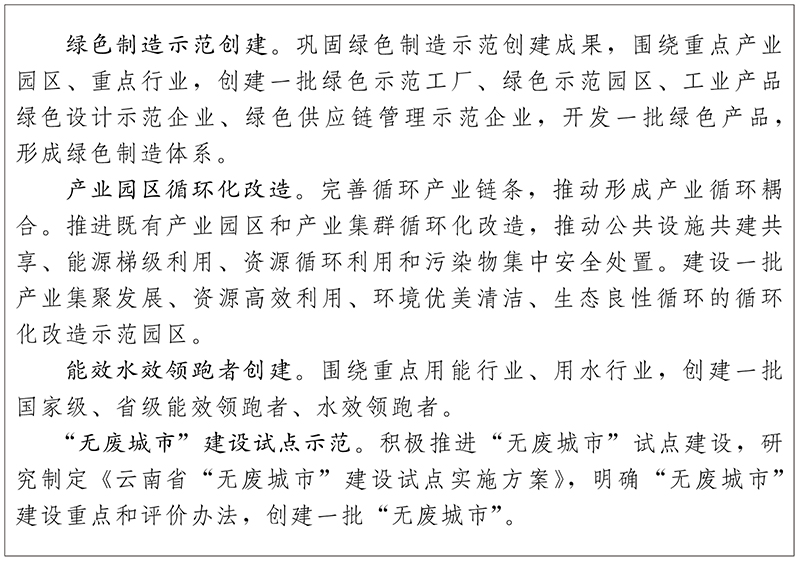圍繞全省工業(yè)綠色發(fā)展工作重點,以提高資源產(chǎn)出率為目標,大力推進昆明、曲靖、玉溪、紅河等地區(qū)共伴生礦產(chǎn)資源綜合利用試點示范,實施鋼渣、磷石膏、粉煤灰等大宗工業(yè)固體廢物資源化示范工程,全面推進生活垃圾分類收集,開展多元化生活垃圾終端處置工程和農(nóng)林廢棄物資源化項目,培育再生資源利用企業(yè),建立可再生資源循環(huán)利用體系,促進再生資源清潔化回收,規(guī);煤图刍l(fā)展。