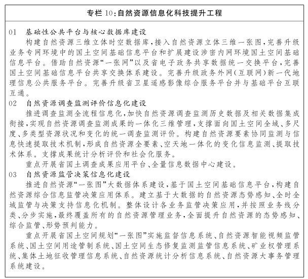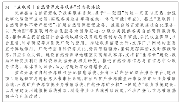 統(tǒng)籌推進(jìn)信息化建設(shè)。推進(jìn)實現(xiàn)全省自然資源信息系統(tǒng)“網(wǎng)絡(luò)通、系統(tǒng)通、數(shù)據(jù)通、應(yīng)用通”、數(shù)據(jù)資源“跨層級、跨系統(tǒng)、跨部門、跨業(yè)務(wù)”共享交換。加快構(gòu)建完善自然資源“一張網(wǎng)”“一張圖”“一個平臺”信息化基礎(chǔ)設(shè)施。