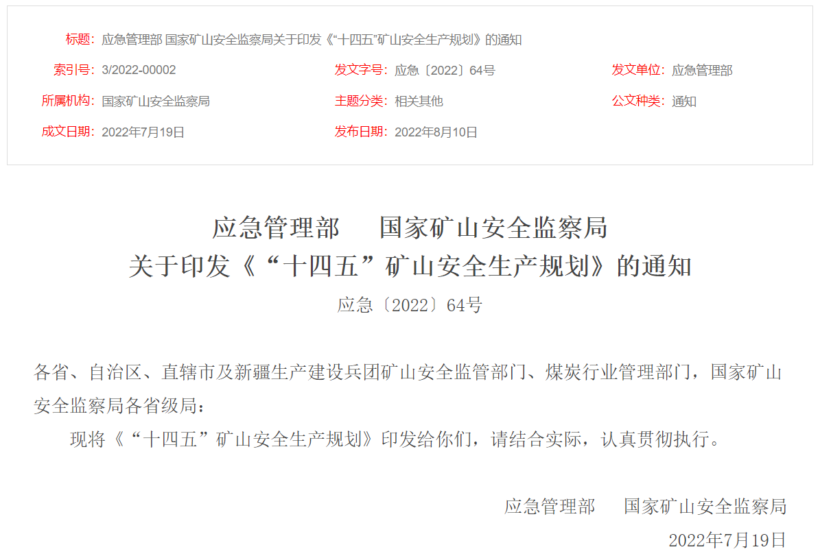 “十四五”礦山安全生產(chǎn)規(guī)劃