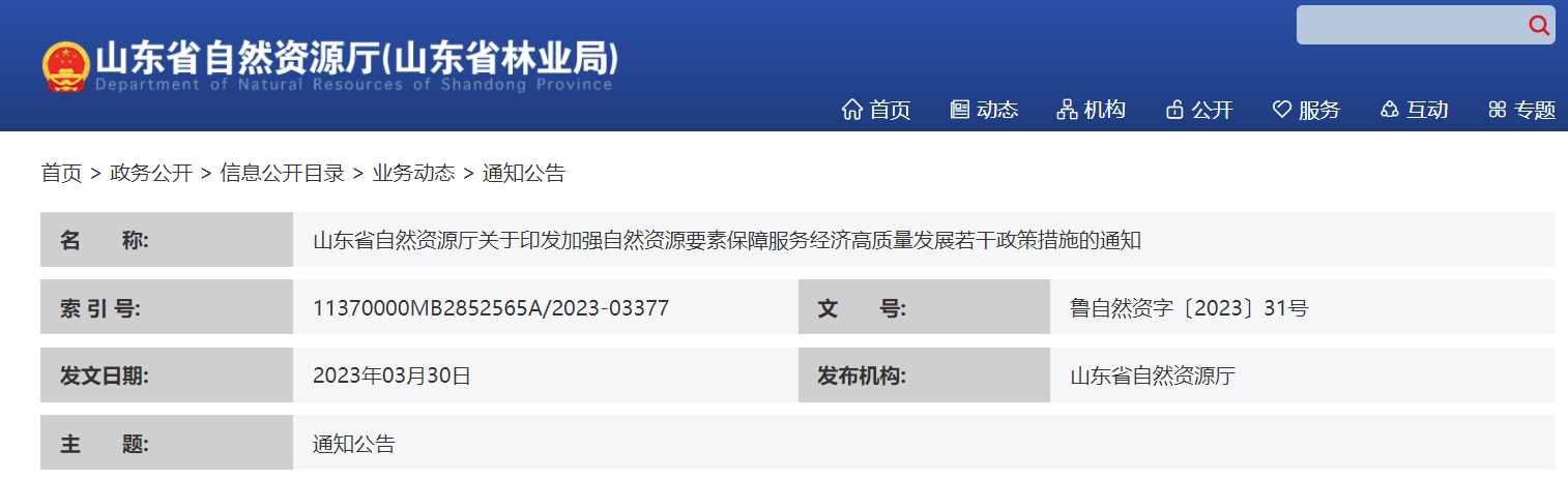 文章來源于:山東省自然資源廳,原文鏈接:山東省自然資源廳關(guān)于印發(fā)加強(qiáng)自然資源要素保障服務(wù)經(jīng)濟(jì)高質(zhì)量發(fā)展若干政策措施的通知